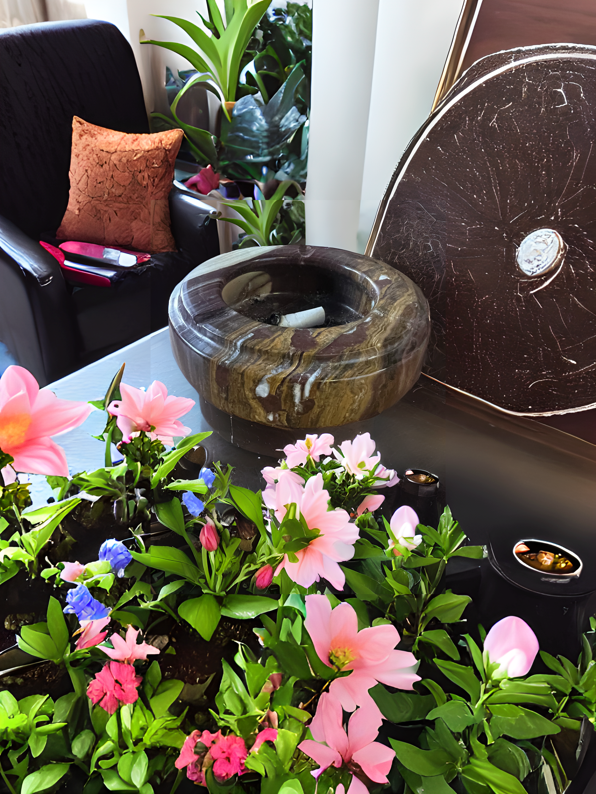 - Crafted from luxurious Onyx Marble, this Ashtray boasts a sleek, polished exterior.